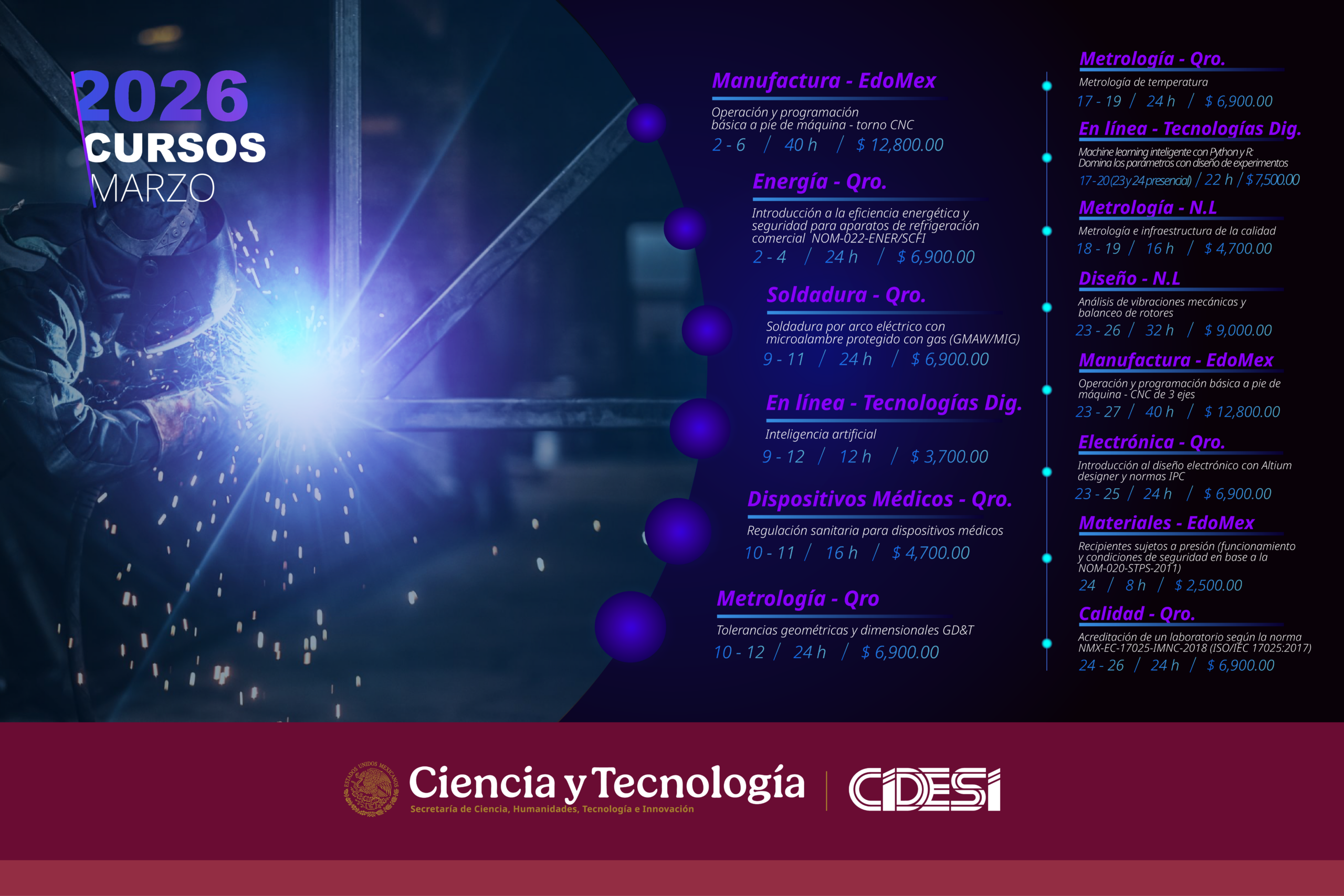 Formación, actualización y capacitación de Capital Humano ofreciendo capacitación especializada y de alto nivel. Dirigidos a profesionistas o personas con formación práctica profesional, técnica o laboral que requieren actualizar conocimientos y adquirir habilidades que les permitan un mejor desempeño en su entorno laboral.