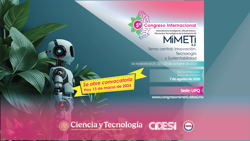 La Universidad Politécnica de Querétaro (UPQ) y el Centro de Ingeniería y Desarrollo Industrial (CIDESI) C O N V O C A N A la comunidad académica, científica y tecnológica, así como a estudiantes, investigadores, profesionales y representantes de los sectores industrial y productivo, a compartir resultados de investigación, desarrollo tecnológico, innovación y experiencias aplicadas […]