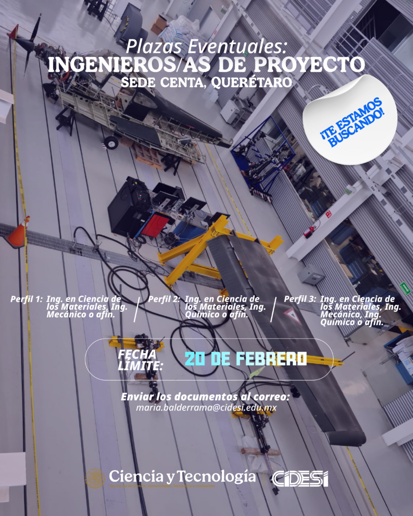 Vacante : Plazas Eventuales como Ingenieros/as de Proyecto, en la Sede CENTA, Querétaro.